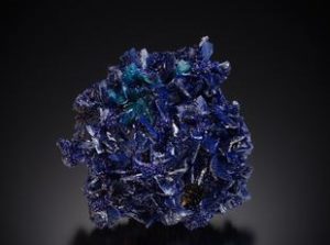 bladed Azurite pseudomorphing to Malachite; Photo by Michael Bainbridge